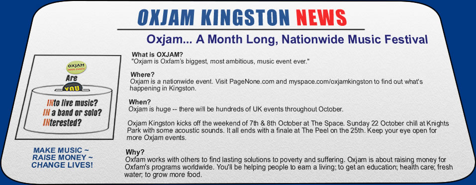 OXJAM Kingston Music Fest' Starts the Weekend of 7th and 8th October 2006. DON'T MISS IT!!!